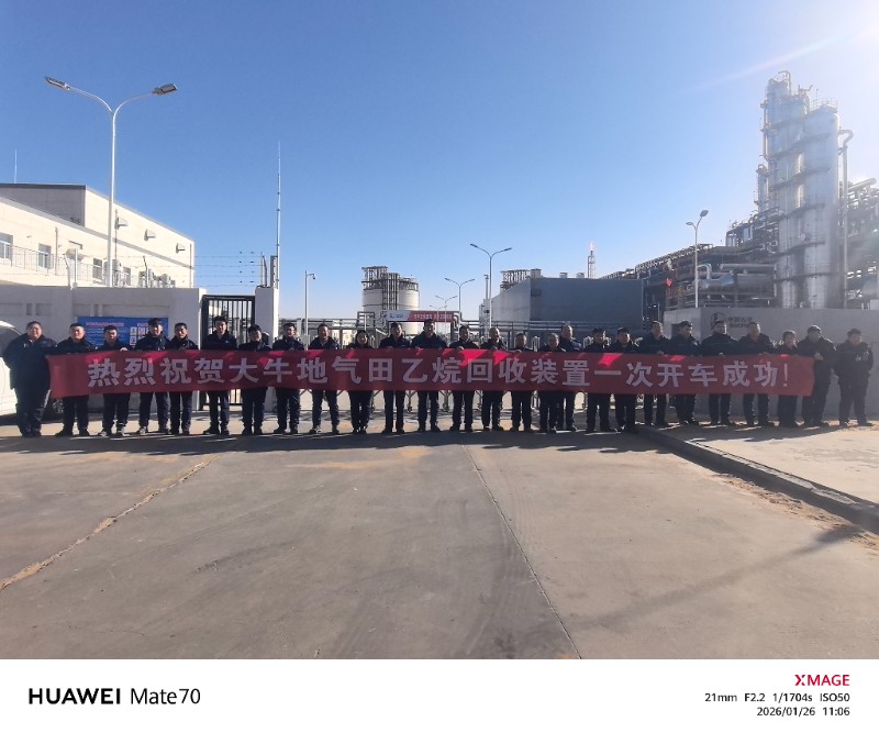 近日,鄂尔多斯分公司华北采气厂项目部承接的大牛地气田乙烷回收项目,传来振奋人心的捷报——历经19天昼夜奋战,该项目于2026年1月23日成功产出合格乙烷产品,顺利完成投料试车任务,正式转入试生产阶段。19天的坚守与付出,镌刻着全体维保人员的责任与担当。